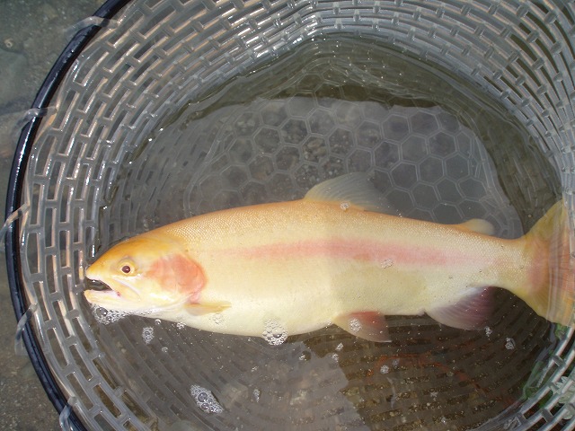| 鹿島槍のアルビノ、他のエリアトラウトのアルビノよりも赤い? | 夕まづめにエルクヘアカディスで1本 |